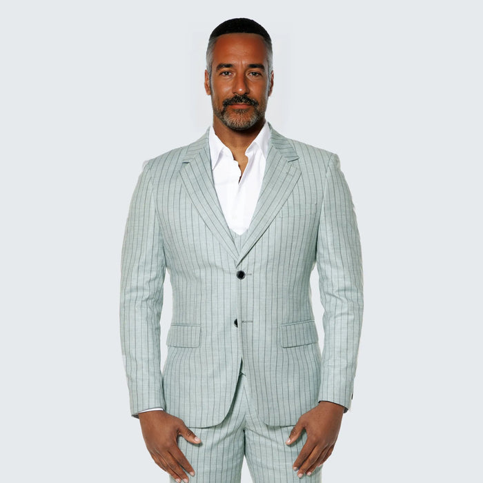Mint Grey Suit with Pinstripes Three Piece Set - Wedding - Prom