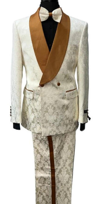 Mens 2 Button Shawl Lapel Suit Ivory ~ Rust