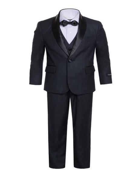Men's Boys Shawl Lapel Dark Navy Tuxedo Set Perfect for wedding attire outfits - Toddler Suit