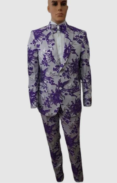 Prom 2025 Suits - Wedding Suit - Paisley Suit - Floral Suit + Matching Bowtie