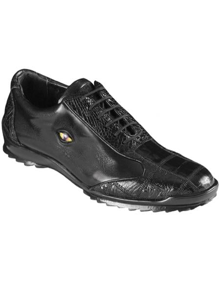 Mens Los Altos Genuine Caiman Croc Patch Design Black Sneaker