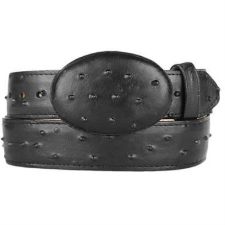 Ostrich Print (Imitation) Western Style Printed Leather Belt Black
