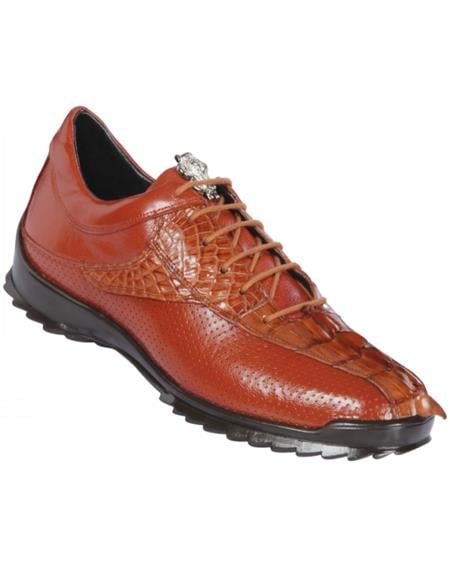 Mens Los Altos Genuine Caiman Croc Tail Cognac Sneaker
