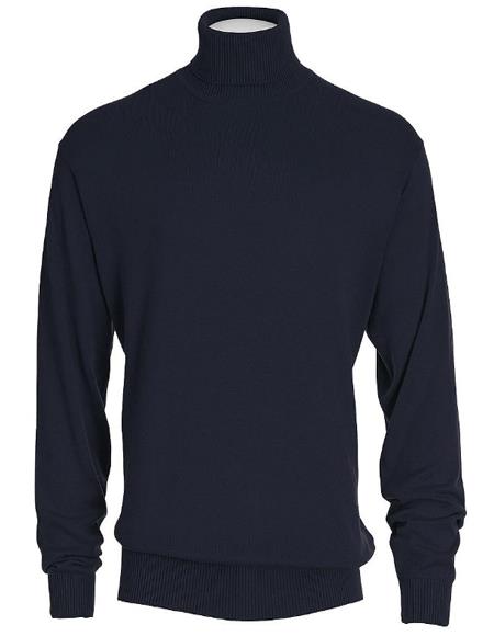 Mens Navy Blue Cotton Blend Turtleneck Sweater Shirt