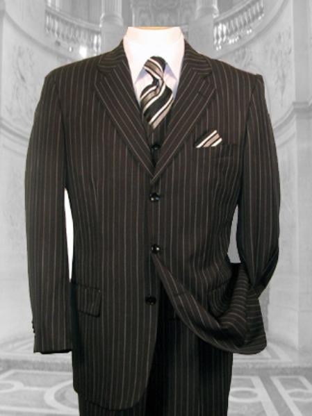 JP56 BLACK W/ WHITE PINSTRIPE EXTRA FINE SUPER 120'S Cheap Priced Business Suits Clearance Sale Available In 2 Or 3 Buttons Style Regular Classic Cut