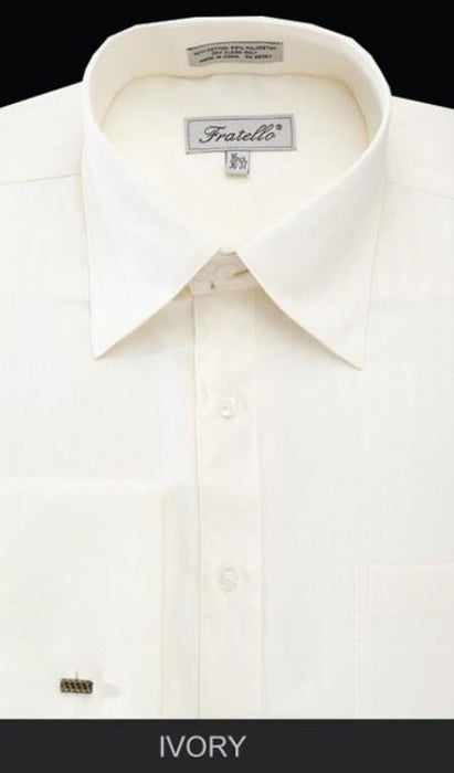 Fratello French Cuff Ivory - Herringbone Tweed Stripe Big and Tall Sizes 18 19 20 21 22 Inch Neck Men's Dress Shirt