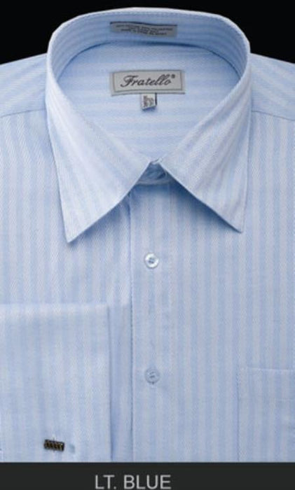 Fratello French Cuff Light Blue - Herringbone Tweed Stripe Big and Tall Sizes Men's Dress Shirt