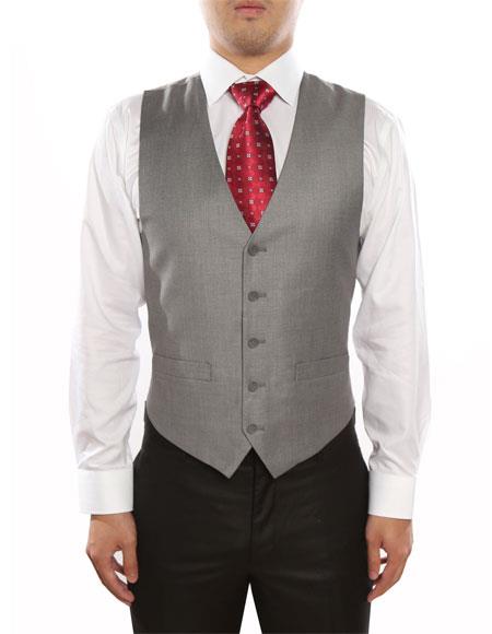 Men's 5 Button Light Grey Classic Fit Fully Lined Vest