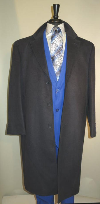 Men's Dress Coat 3 Button Long Wool Blend Navy Color Full Length Overcoat Winter Men's Topcoat Sale