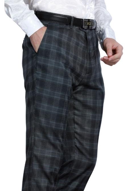 Mens Flat Front Pants - Plaid Pants - Slim Fit Pants - Windowpane Pant - Charcoal