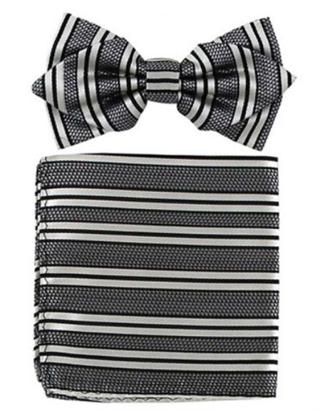 Mens Formal - Wedding Bowtie - Prom 2025 Black Stripe Bowtie