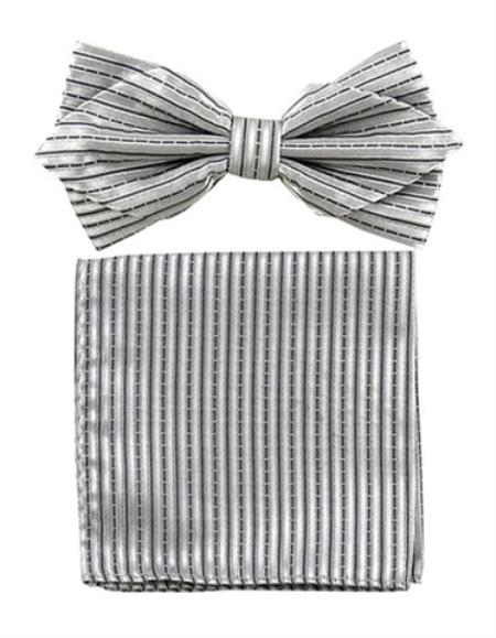 Mens Formal - Wedding Bowtie - Prom Silver Stripe Bowtie