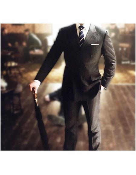 Men's Kingsman Striped Pattern Double Breasted Grey Button Closure Fully Lined Suit