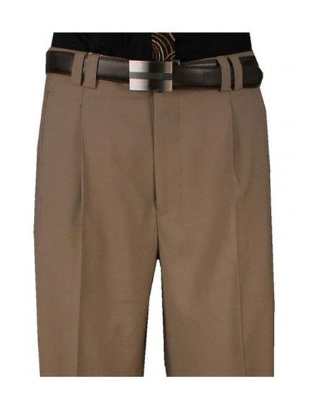 Men's Single Pleat Wide Leg 100% Pure Wool Khaki Pant unhemmed unfinished bottom