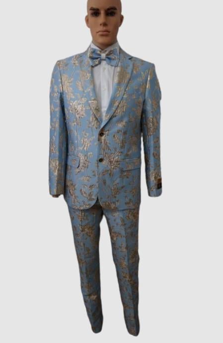 Prom 2025 Suits - Wedding Suit - Paisley Suit - Floral Suit + Matching Bowtie