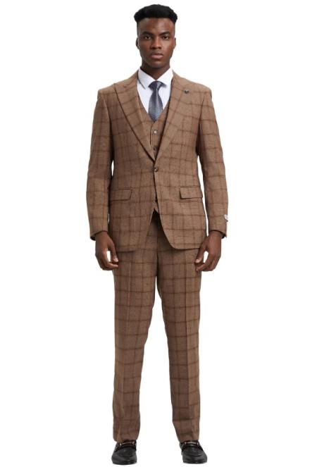 Stacy Adams Peak Lapel Brown Plaid Mens Suit