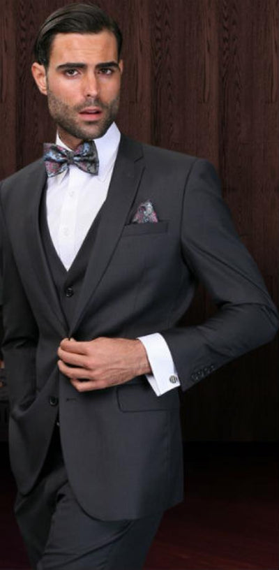 Mens Three Piece Suit - Vested Suit 2-Button Vested Suit Skinny Lapel Siut 3 Pieces 3PC Slim Fitted Cut Color: Charcoal