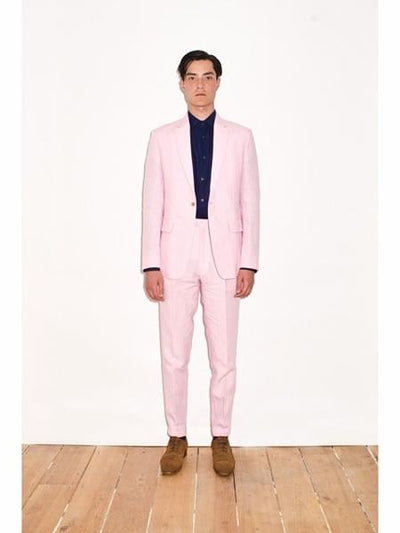 2 Button Notch Lapel Flap Two Pockets Material: Linen Color: Pink Mens Linen Suit