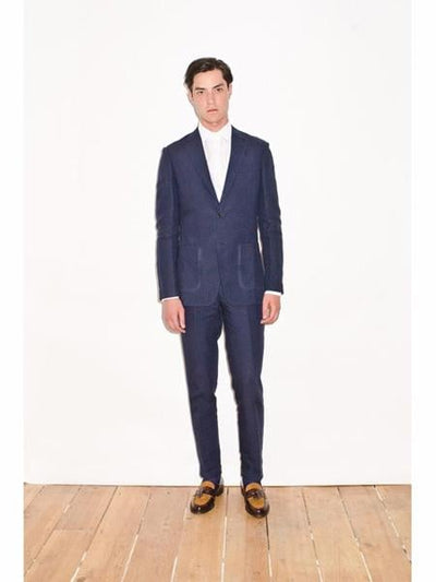 2 Button Notch Lapel Patch Two Pockets Material: Linen Color: Navy Mens Linen Suit
