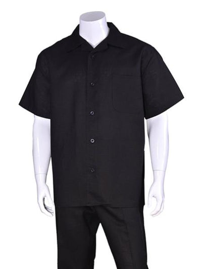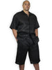 View full detailsButton Closure Single Breasted One Chest Pocket Short Sleeve Short Pants Side Vent Belt Loops Mens Linen Suit Color: Black SKU#SM3371