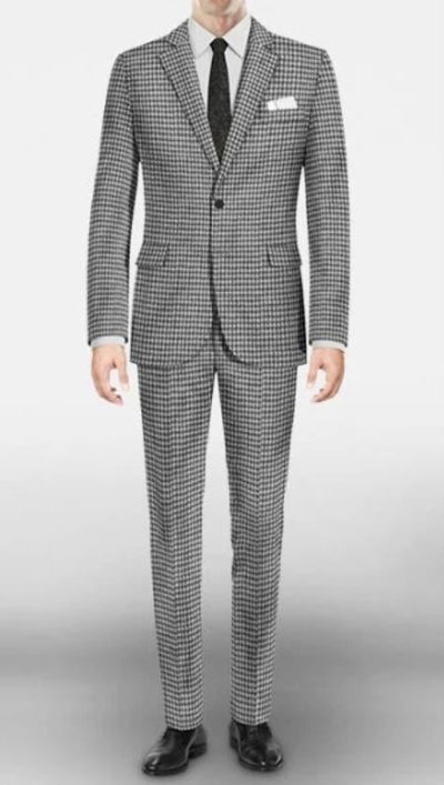 View full detailsChcecker houndstooth fabric Mini Pindots Teakweave Nailhead Salt & Pepper Birdseye Patterned Suit SKU#J53873