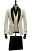 1 Button Peak Label Single Breasted Slim Fit Center Vent One Chest Pocket Besom Pockets Color: Ivory ~ Black