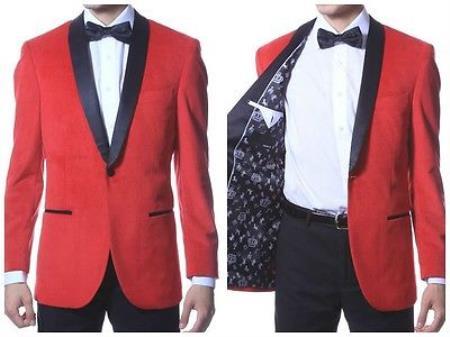 2 Button Notch Lapel Single Breasted One Chest Pocket Flap Front Pockets Material: Velvet Color : Red SKU#SM5196