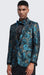 Mens Turquoise And Grey Tuxedo Jacket Floral Pattern Slim Fit - Blazer