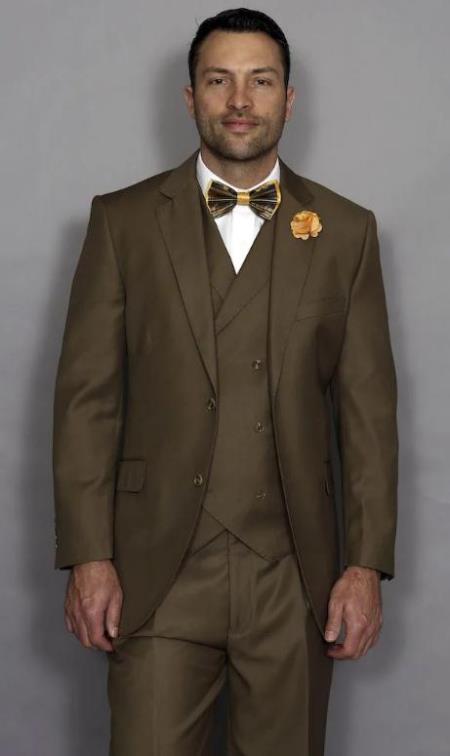 2 Buttons Single Breasted Notch Lapel One Chest Pocket Two Flap Front Pockets Color: Light Brown SKU#JA4496
