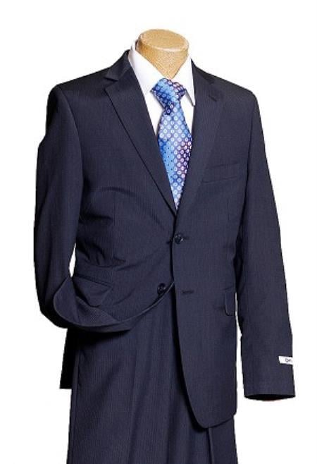View full detailsClassic 2 Button Design Pin Stripe Design Side vented Notch Lapel Flat Front - Non Pleated Color: Navy SKU#J53388