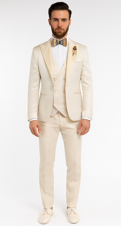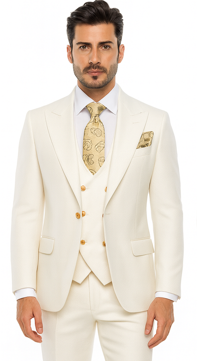 View full detailsExude timeless sophistication with the Rossi Man FORD RM1913 Slim Fit 3-Piece Suit for Men in Off-White, a distinguished ensemble tailored for the ...