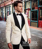 Four Button Cuff Single Breasted Peak Label Casual: Formal One Chest Pocket Suit Fit: Slim Fit Color: Ivory Cream Off White SKU#JA1319