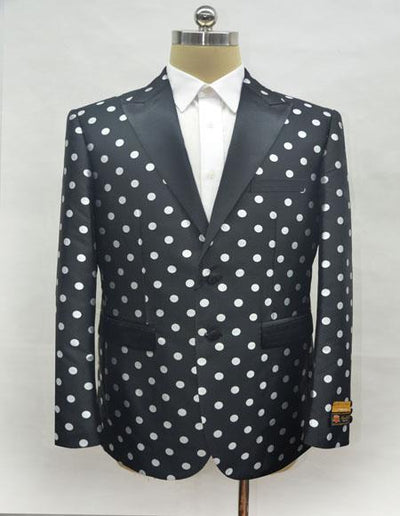 Two Button Single Breasted Peak Label Two Flap Pocket One Chest Pocket Color: Black-White SKU#JA1378