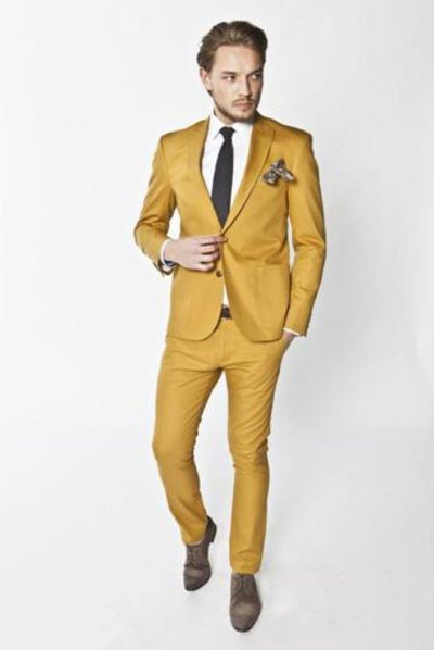 2 Button Suit Jacket Double Breasted Suit Peak Lapel One Chest Pocket Two Flap Front Pockets Classic BOLD Camel and White Back Vents Color: Camel ...