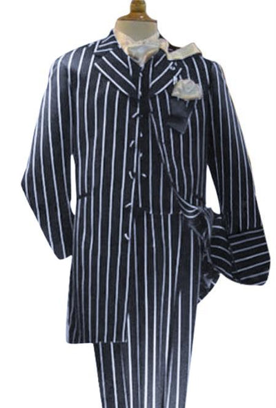 Button Closure Single Breasted Peak Lapel Pinstripe Pattern Color: Black / White SKU#MO771