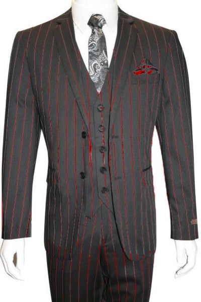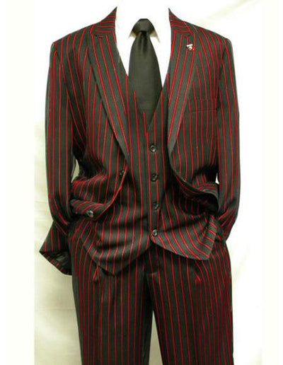 Two Button Notch Lapel One Chest Pocket Striped Pattern Color : Black ~ Red SKU#EK229