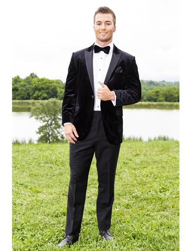One Button Single Breasted Peak Lapel One Chest Pocket Flap Front Pockets Material : Velvet Color : Black SKU#EK261