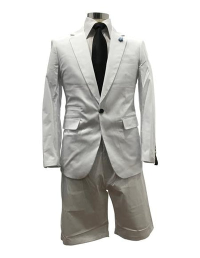 View full details2-Piece Set: Includes Jacket & Pants Color: White Thread Count / Feel: Super 150's Pattern: Textured Jacket Lapels: Peak Front Buttons: 1 Jacke...