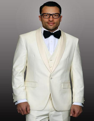 View full details2-Piece Set: Includes Jacket & Pants Color: Off-White Thread Count / Feel: Super 150's Pattern: Solid Jacket Lapels: Shawl Front Buttons: 1 Jac...
