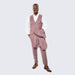 Men's lilac three piece suit with notch lapel. Glen Check Pattern. High end suit by Stacy Adams. This suit is a hybrid fit, meaning, sizes up to 44 are a slimmer cut and sizes 46+ are modern fit. This slim cut suit is made of a luxurious rayon viscose/ dacron blend fabric . Jacket has one button front closure .  Jacket has  front flap pockets . Jacket pockets are usable but come sewn shut. Gently cut open to use. Interior French facing. Very high quality and well constructed.  Comes with matching flat front trousers with narrow leg opening.  Subtract six inches from your jacket size to determine your pant waist size. Meaning, if the coat size is a 40R the pants waist will be a 34R. Comes with a matching four button fullback vest. This suit is ideal for weddings, proms, and other formal events. Dry clean only.
