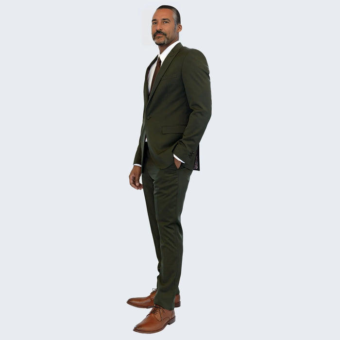 Olive Green Slim Fit Suit with Peak Lapel - Wedding - Prom