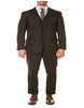 2 Button Notch Lapel Single Breasted Herringbone Suit One Chest Pocket Two Flap Front Pockets Color: Olive