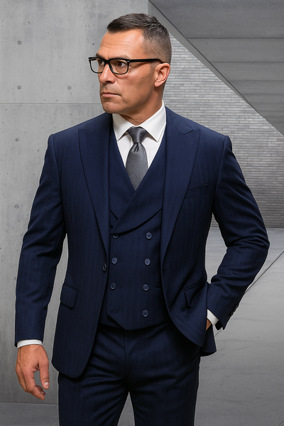 View full detailsElevate your formal wardrobe with the Tazzio Suits Navy Blue Men's 3-Piece Suit, a perfect blend of modern sophistication and timeless elegance. De...