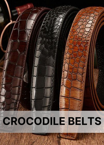 Available Colors: Black Silver Available In Size's: Adjustable (32 to Size 50) Material: Genuine Crocodile Belt Width: 1.2" SKU#JA8436