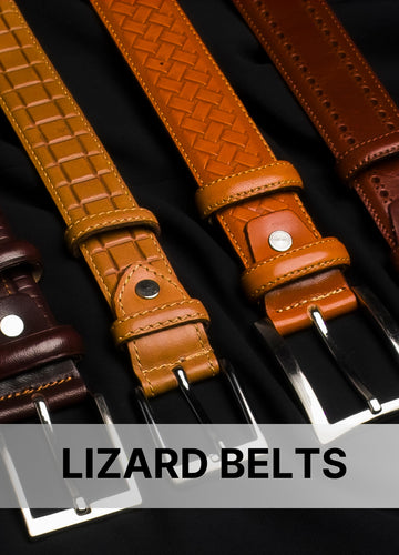 Hi-quality Full Nubuck Backing Satin Nickle Buckle Handmade In Spain Material: Genuine Lizard / Calfskin Color: Black SKU#JA298