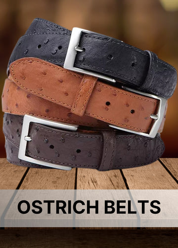 Satin Nickle Buckle Hi-Quality Full Nubuck Backing Handmade In Spain Material: Genuine Ostrich / Calfskin Color: Brown / Rugger SKU#JA315