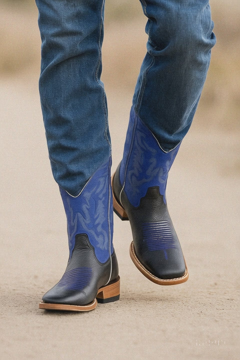 Elevate your Western style with the Los Altos Boots Men’s Grisly Wide Square Toe Boots in a striking Black and Blue two-tone finish. Designed for men who demand bold looks without compromising on comfort, these boots showcase the artistry and craftsmanship that have made Los Altos a trusted name in premium Western footwear.