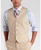 Single Breasted 5 Button Vest V-neckline Adjustable Back Belt Besom Front Pockets Flat Front Pants Modern Fit Material: 100% Linen Color: Tan SKU#G...