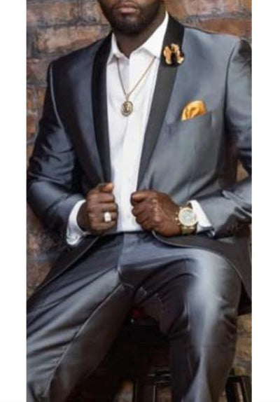 2 Button Closure Contrast Shawl Lapel Flap Front Pockets One Chest Pocket Color: Black SKU#SM5138
