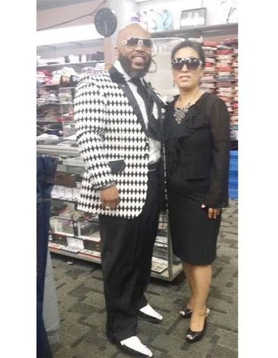 Buttons Closure Shawl Lapel Besom Chest Pocket Front Flap Pockets Checked Pattern Color : Black/White SKU#CH1528